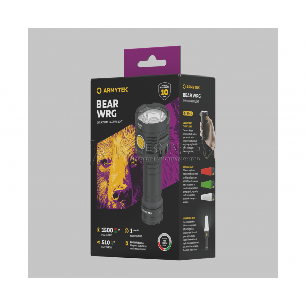 Bear WRG - это универсальный фонарь на каждый день с тремя цветами света.Белый свет модели идеально подходит для высвечивания отдельных удаленных объектов при исследовании местности в лесу или обходе территории.