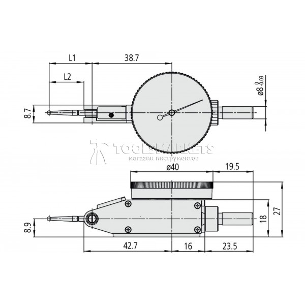 Индикатор рычажно-зубчатый MITUTOYO 0-1 мм 0,01 мм 513-415-10E