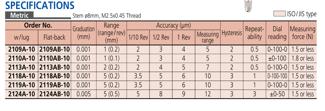 2109AB-10 Измерительная головка (индикатор часового типа) 1 мм 0,001 мм MITUTOYO