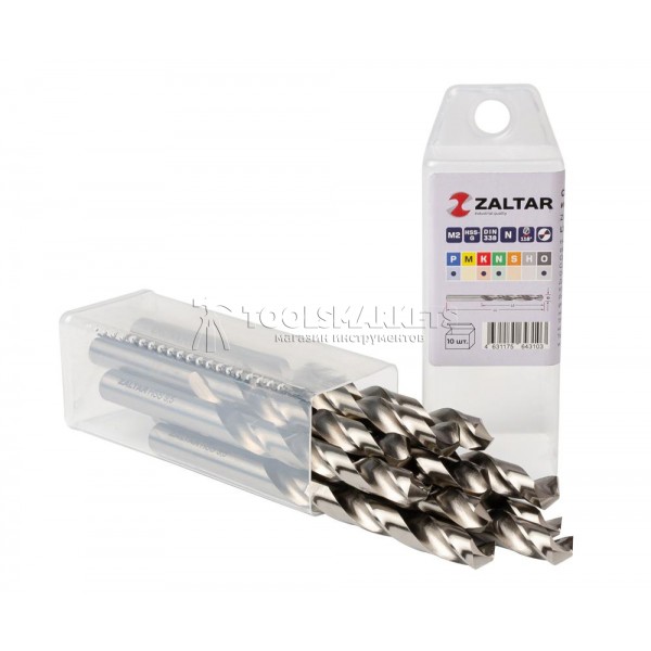 Комплект свёрл по металлу индустриальных, 10 шт, DIN 338, HSS-G, Тип N, 5xD, Ø9.50 мм ZALTAR ZA-73095-S10