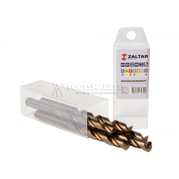 Комплект свёрл по металлу индустриальных, 5 шт, DIN 338, HSS-E Co5, Тип VA, 5xD, Ø10.50 мм ZALTAR ZA-74105-S5
