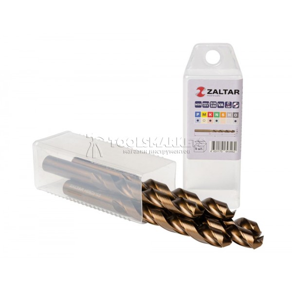 Комплект свёрл по металлу индустриальных, 5 шт, DIN 338, HSS-E Co5, Тип VA, 5xD, Ø12.50 мм ZALTAR ZA-74125-S5