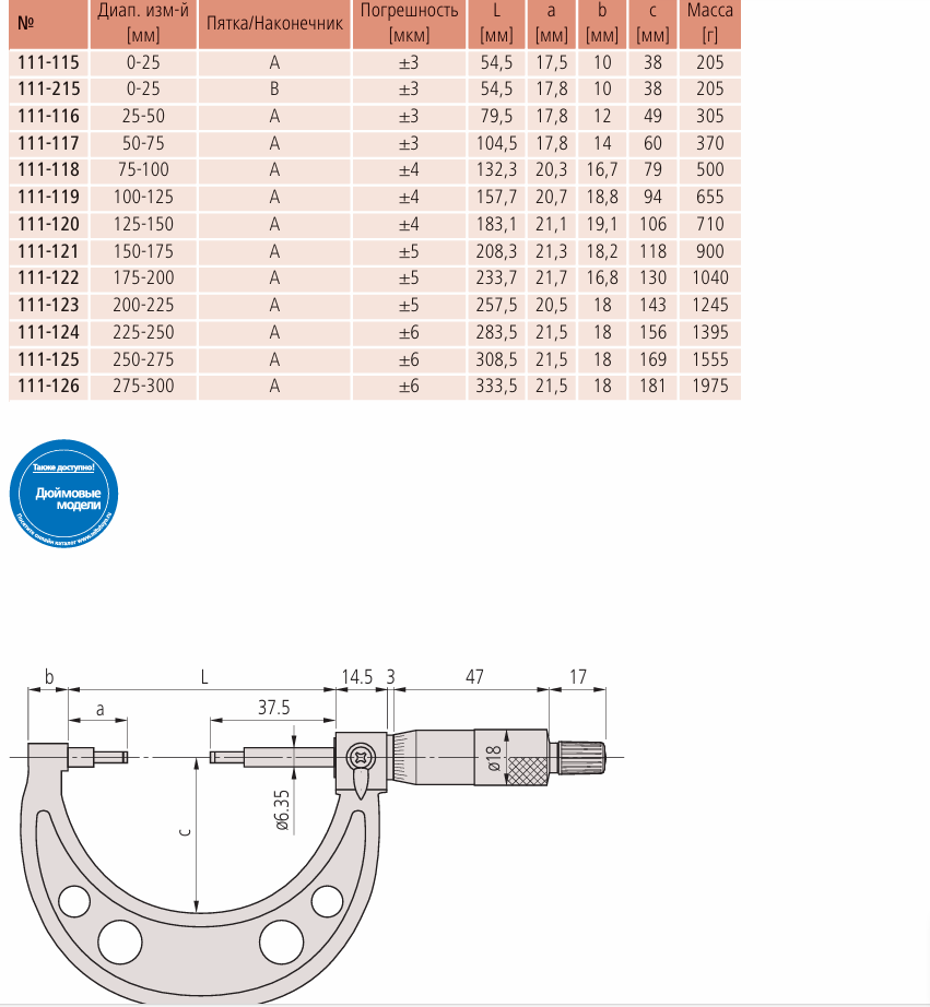 Микрометр 25-50мм 0,01 3,0 мм со ступенчатыми измерительными поверхностями MITUTOYO 111-116