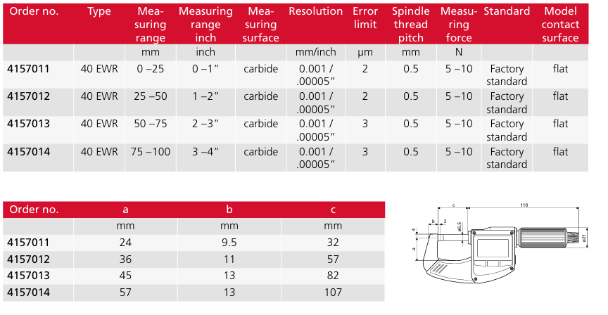 Mahr Micromar 40EWR (4157011) — цифровой микрометр немецкого производства, предназначенный для точного измерения наружных размеров с высокой повторяемостью результатов.