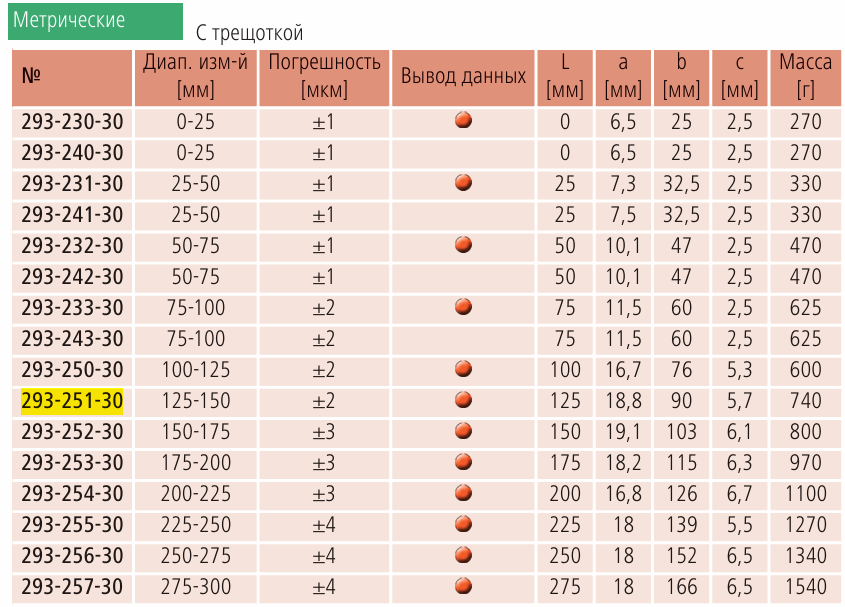 Эти метрические микрометры гарантируют высокую точность и надежность, поставляются с выводом данных и без него. Преимущества: