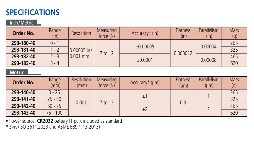 • Высочайшая точность, инструментальная погрешность составляет всего ±1 мкм (для моделей с диапазоном до 75 мм).