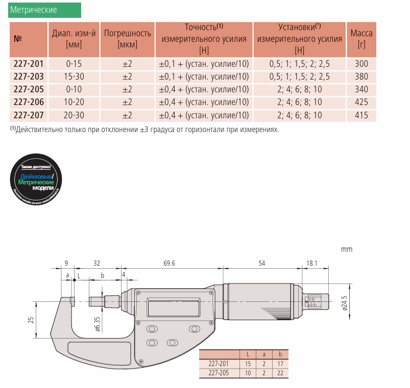Эти микрометры имеют регулируемое измерительное усилие для измерения раз личных деталей.