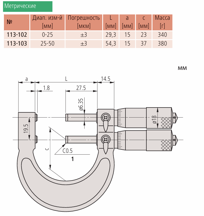 | Шаг измерения, мм | 0.01 |