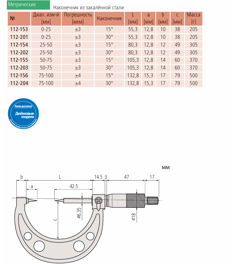 Эти микрометры с точечными пяткой и микровинтом имеют следующие преимущества: