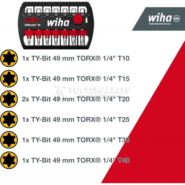 Набор бит BitBuddy®, биты 49 мм TORX, 7 предметов, 1/4" серия 7946 WIHA WH-42115