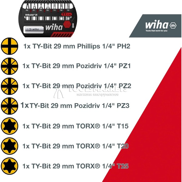 Набор бит BitBuddy®, биты TY 29 мм смешанный, 8 предметов, 1/4" серия 7945TY WIHA WH-42137