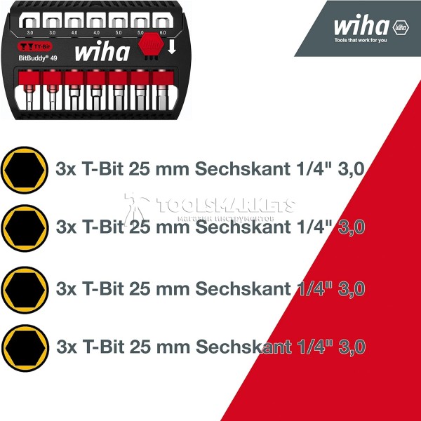 WH-42114 Набор бит BitBuddy®, биты TY 49 мм Шестигранник, 7 предметов, 1/4" серия 7946 WIHA