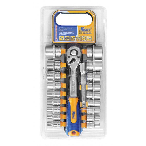 KT 700690 Набор головок торцевых и принадлежностей 1/2", 20 предметов KRAFT