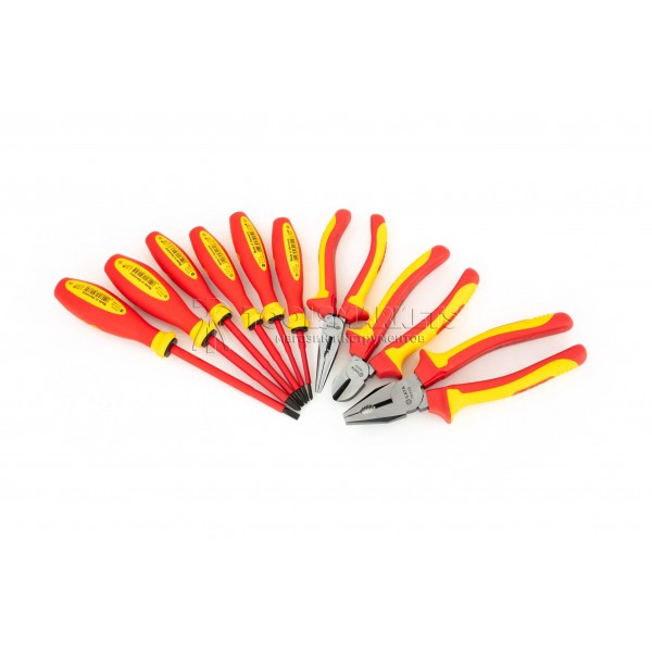 Набор изолированных отверток и пассатижей Sata 9 предметов 09262 предназначен для различного спектра ремонтных, монтажных и слесарных работ. Инструмент выполнен из высококачественной стали, что обеспечивает прочность и долговечность. Наличие изоляционного покрытия позволяет использовать инструмент при работе под напряжением до 1000 В. Эргономичные двухкомпонентные рукоятки обеспечивают удобный хват и комфортное использование.