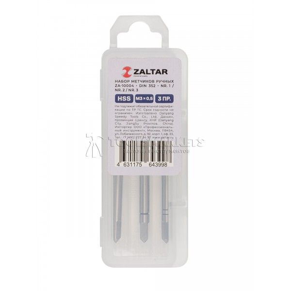 Набор метчиков ручных HSS DIN 352, 3 пр., Nr.1/Nr.2/Nr.3, M3 x 0.5