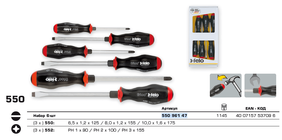 Набор отверток SL/PH с шестигранным лезвием, 6 предметов FELO 550 961 47