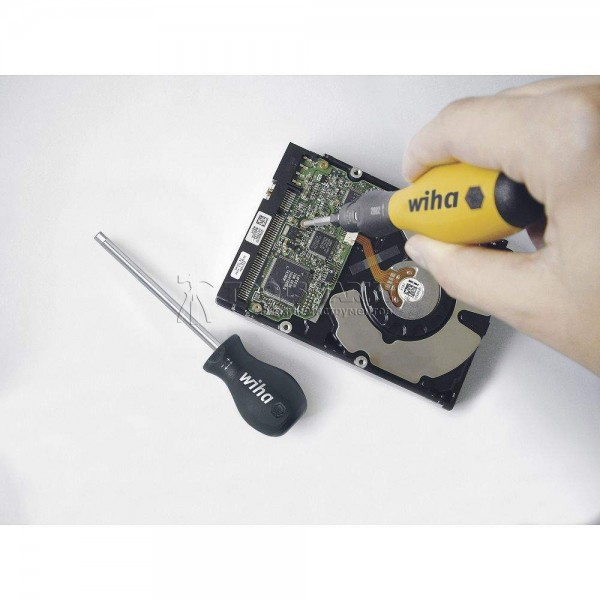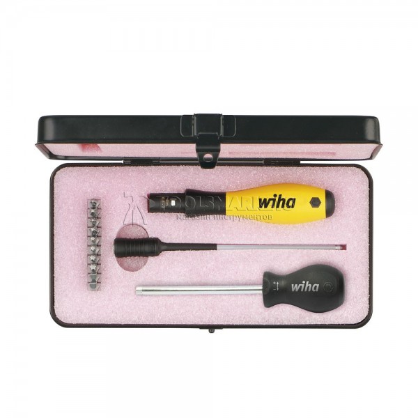 Набор с динамометрической отверткой TorqueVario-S 43898 фирмы Wiha - функциональный комплект из 13 предметов для контролируемого заворачивания винтов на деталях, не допускающих воздействия электростатического заряда. Отводящие электростатический заряд инструменты защищают электронные детали от разрушения.В набор входит современная отвертка TorqueVario-S с регулируемым ограничением крутящего момента для точной и деликатной работы, установочный инструмент для динамометрической отвертки с продольной рукояткой, держатель бит и комплект из 10 прочных бит. Технология SoftFinish заботится о вашем здоровье, не допуская перенапряжения мышц и сухожилий, а также выскальзывания инструментов из рук. В комплекте предусмотрен практичный и компактный кейс, который поможет организовать хранение инструментов.
