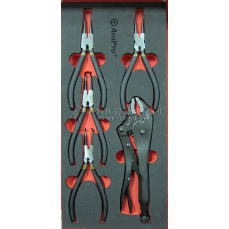 T28944 Набор съемников стопорных колец и плоскогубцы AmPro, 5 предметов в мягком ложементе
