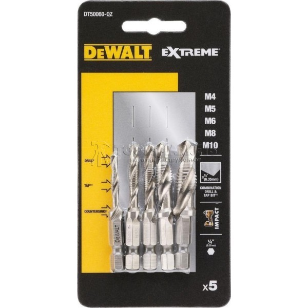 Набор сверл-метчиков DEWALT M4,5,6,8,10, 5 предметов DT50060-QZ