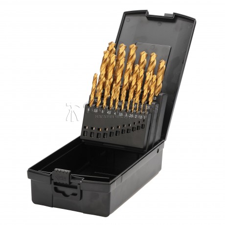 Набор сверл по металлу 25 шт, 1-13 мм, HSS-G TiN RUKO 250215TRO