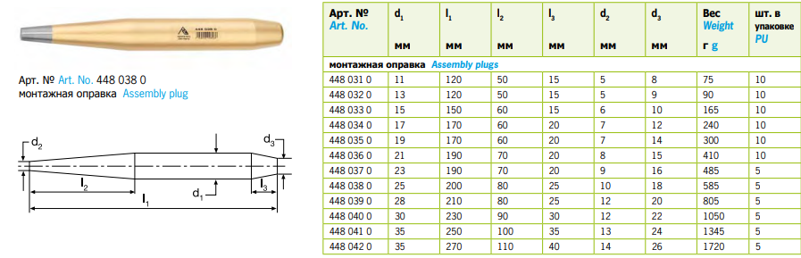 Конусная монтажная оправка Rennsteig - инструмент для металлообработки.Она предназначена для выглаживания и калибровки стенок прошитого или пробитого отверстия, продвигаясь по его внутренней поверхности с определенной степенью натяга.