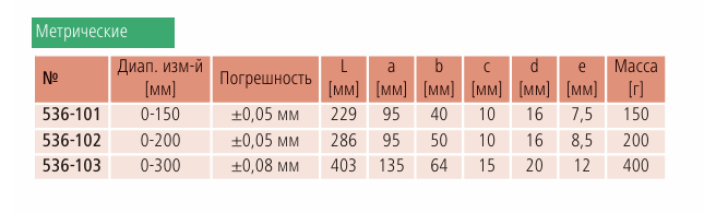 Технические характеристики штангенциркуля MITUTOYO 536-102