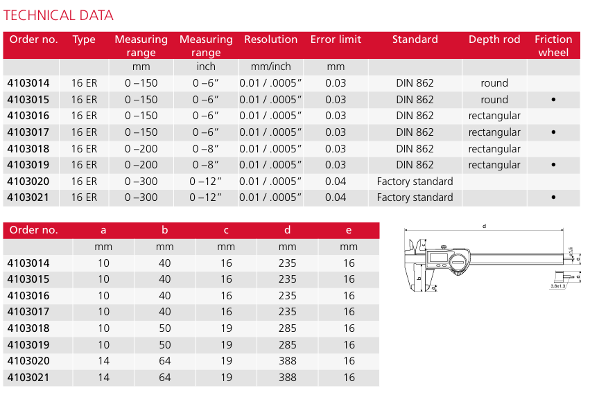 Mahr MarCal 16ER (4103016) — высокоточный цифровой штангенциркуль немецкого производства, предназначенный для профессионального использования в машиностроении, металлообработке и контроле качества.