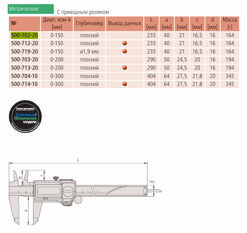 Эти штангенциркули Digimatic имеют скругленные губки для измерения внутренних размеров и стандартные губки.