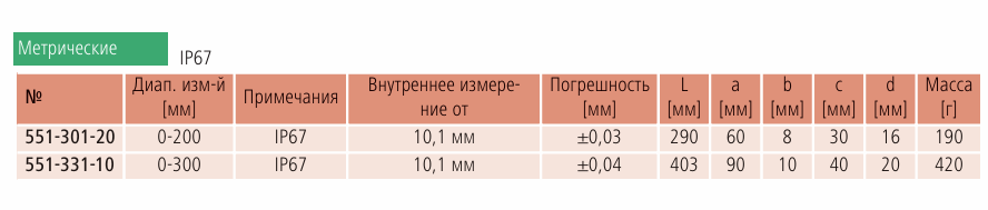 Технические характеристики штангенциркуля MITUTOYO 551-301-10