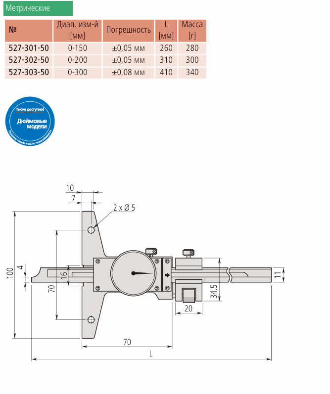 Эти штангенглубиномеры с круговой шкалой имеют следующие особенности: