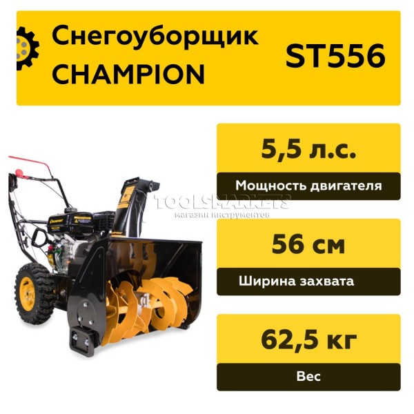Снегоуборщик Champion ST556 с приводом на колеса эффективен для уборки большого количества снега.