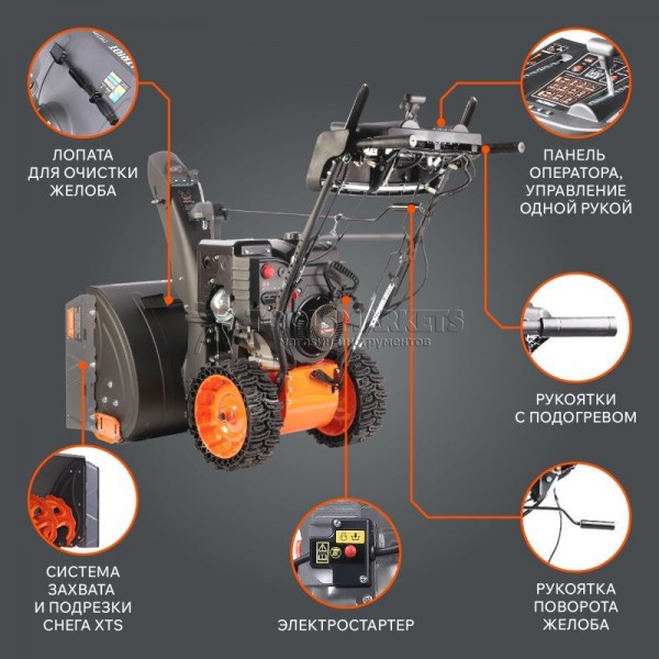 Профессиональный двигатель способен работать при температуре до -35 градусов, а функция электростарта позволяет запустить его по нажатию одной кнопки.