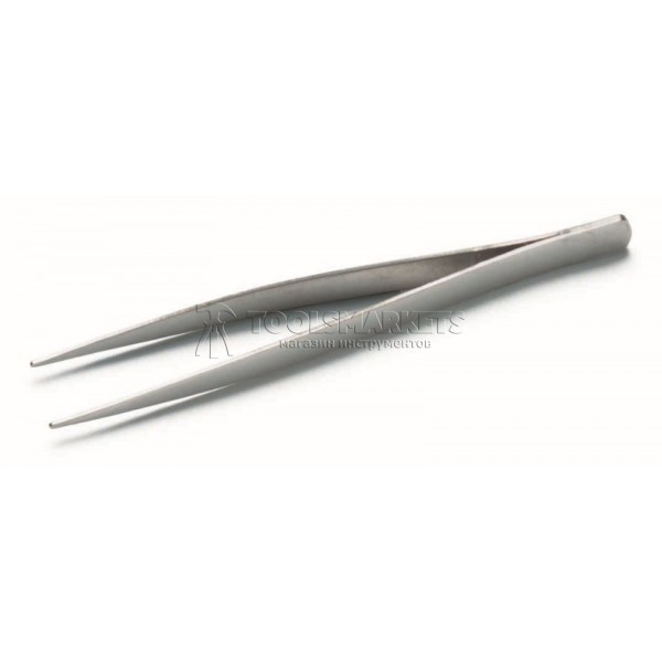 Стальной технический пинцет, изогнутый с насечками на губках.