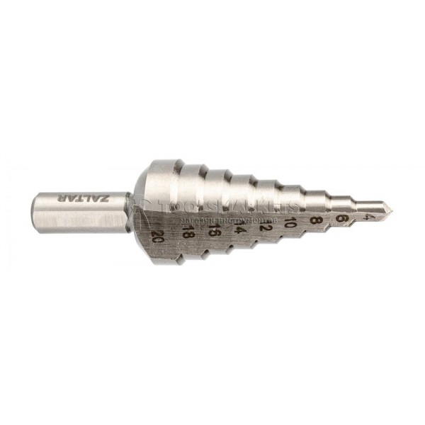 Сверло ступенчатое, HSS, Gr.2, Ø4-20 мм, прямая канавка, трёхплоскостной хвостовик