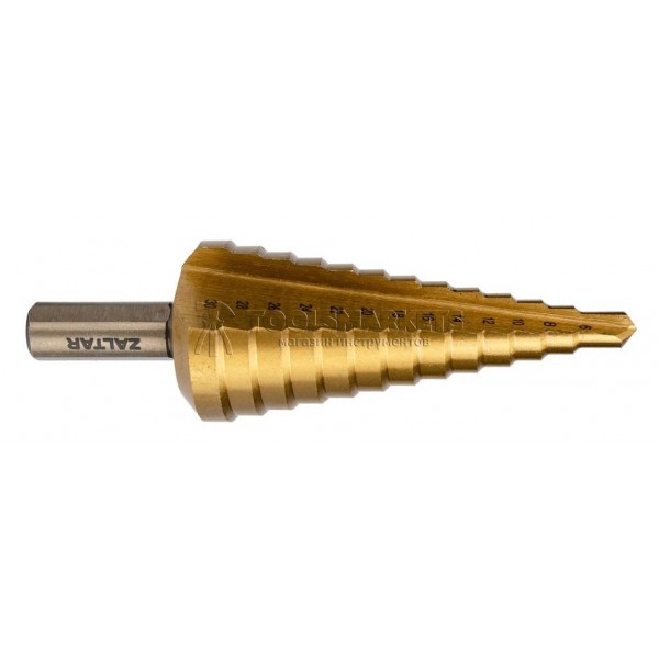 Сверло ступенчатое, HSS TiN, Gr.3, Ø6-30 мм, прямая канавка, трехплоскостной хвостовик ZALTAR ZA-05348